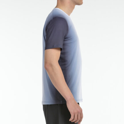 Camiseta técnica en single jersey de poliéster elástico, sublimada en degradado, decorada con prints reflectantes y con detalle perforado láser.