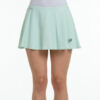 Falda de tejido ligero con textura de bandas de mesh en nylon elástico, la parte lateral texturizada con relieve. Cuenta con malla interior y con cinturilla alta que moldea la silueta.