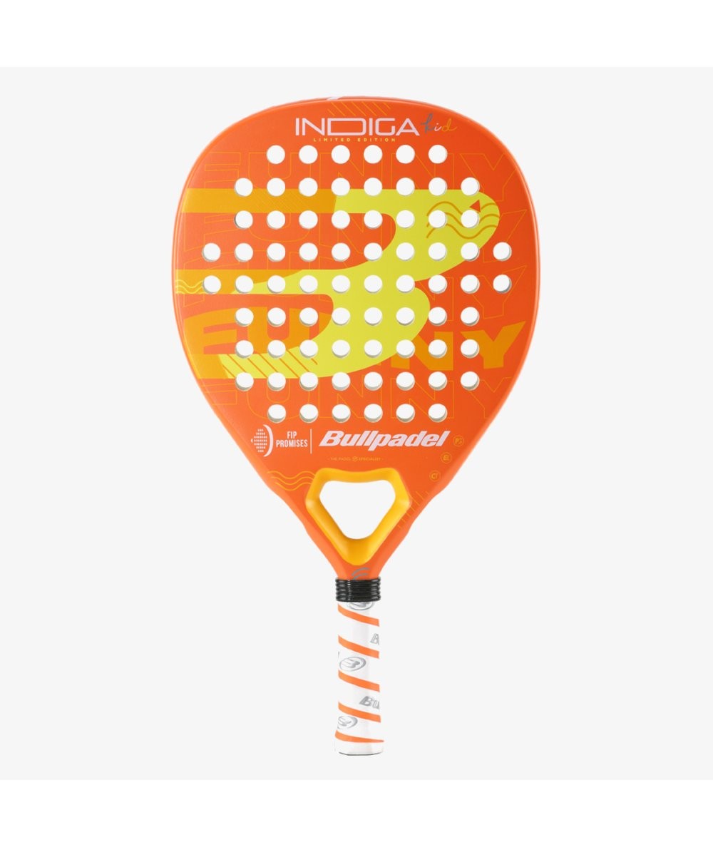 La pala INDIGA KID FIP es la pala de Pádel que Bullpadel elige para la nueva colección FIP 23. Unas pala muy llamativa que esconde una tecnología que los llevará de la mano para aprender la técnica de los golpes, de una manera mucho más fácil y rápida.